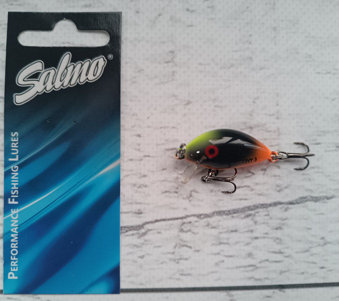 Salmo Tiny — це воблер, призначений для лову спінінга саджанця, окуня і форелі влітку на середніх і великих швидких «форелевих» річках.